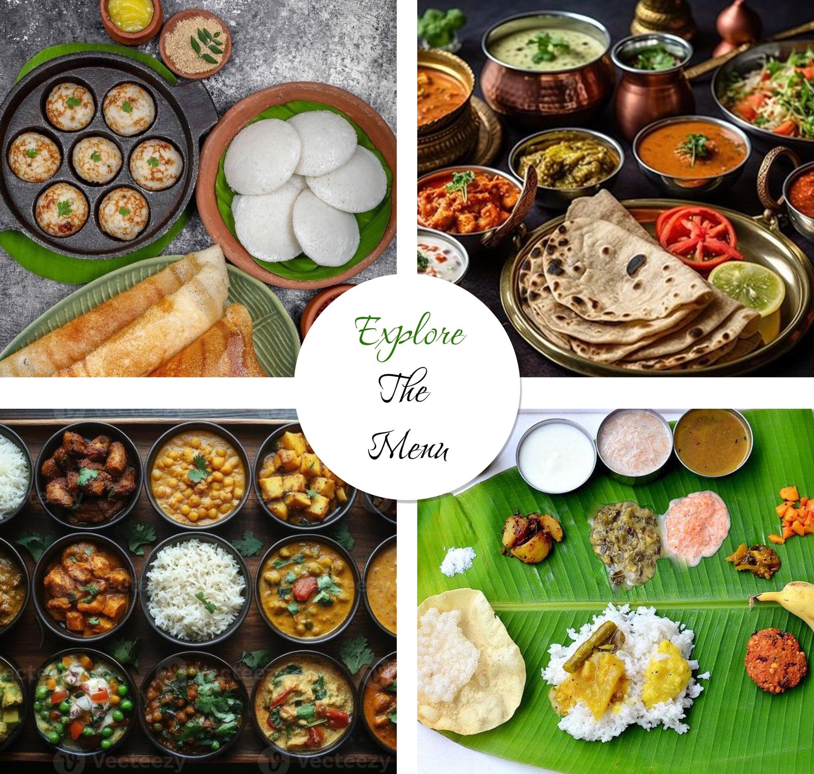 Our breakfast menu features a wide variety of delicious items, including sweets, Ven Pongal, Idli, Vadai, Poori, Onion Dosa, Rava Dosa, and many more.
